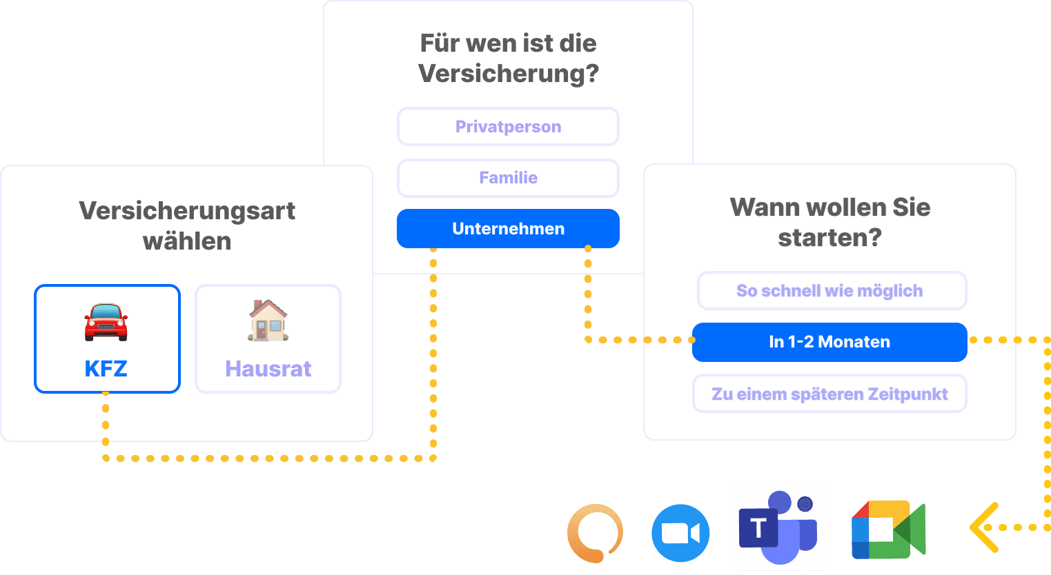 Erstelle anspruchsvolle Routing-Formulare, die deine Kunden zum richtigen Teammitglied oder Service führen. Optimiere deinen Buchungsprozess und steigere die Kundenzufriedenheit.